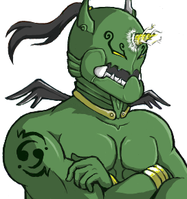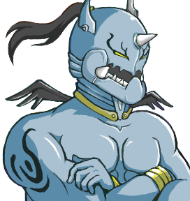 前回おおかみさんと一緒に魔神さんのラフも公開してしまってるんですが、前回のラフを見て頂いたら分かるとおり、ラフと全然違います。はい、もっとコミカルな感じでしたね。一応ラフにある角やら羽根やらはかろうじて付けてはいますが間違ってもこんなモモタロスみたいな面構えじゃなかったと思います。